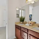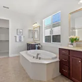 - Bathroom: Double Sinks, Oversized Tub, Shower and Tub, Stall Shower
