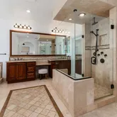 - Room Bathroom Features: Double sinks in bath(s), Double Sinks in Primary Bath, Linen Closet/Storage, Privacy toilet door, Separate tub and shower, Soaking Tub, Vanity area, Walk-in shower, Shower, Shower in Tub, Bathtub, Closet in bathroom