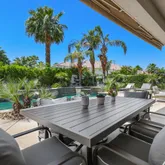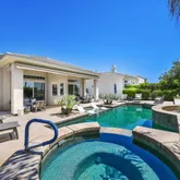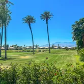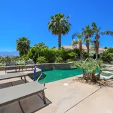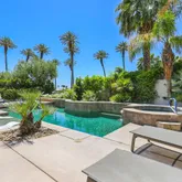 high ceilings. Gourmet kitchen, with cabinetry pull out shelving & prep island opens to the wet bar and great room living area with dramatic corner fireplace for easy entertaining in a truly comfortable setting. Elegant hallway powder room fully updated for your guest comfort & convenience. The living area overlooks an expansive patio deck with serene pool & spa to relax and unwind & enjoy the views of the majestic mountains. The well thought out fully redone master suite with its own patio has a luxury master bath with oversized shower, beautiful oval free standing tub, & dressing area with dual vanities. The master closet with built-ins offers organization at it's finest. The second guest suite is like another master and contains 2 queen beds, oversized closet & private bath. The 3rd. guest suite is spacious as well with it's own bathroom & large closet. Our Club offers and an excellent menu for a superb dining experience provide by a well versed Chef & staff. Our Wellness Center has a menu of treatments, fitness classes, Pickle ball, Tennis &, Bocce ball. Plus many Social activities.