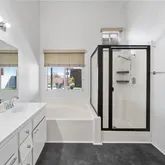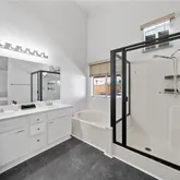 - Room Bathroom Features: Shower in Tub, Double Sinks in Primary Bath, Privacy toilet door, Separate tub and shower, Stone Counters