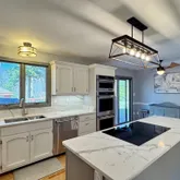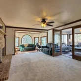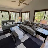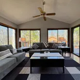 Upon entering, you'll be greeted by a warm sophistication throughout the house. The main level features a large family room with fireplace and sunken conversation area, all season sunroom with beautiful views and sliding doors to deck, large living area with cathedral ceilings and fireplace, dining room, remodeled kitchen with new appliances, double oven, quartz countertops, island, and walkout to large deck, 2 half baths, laundry area and access to garage and lower level.