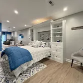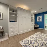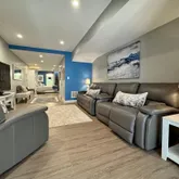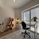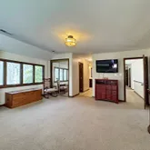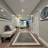 The lower level is fully finished with a murphy bed unit, sitting area, office set up, full bath, and sliding doors to walkout. Perfect for a home office, guests, or in-law suite.