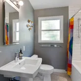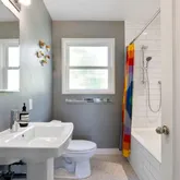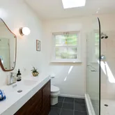 - Bath Features: Shower Stall(s), Skylight/Solar Tube, Tile, Tub, Remodeled