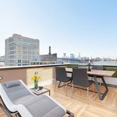 The fourth floor seamlessly accommodates three large bedrooms, two bathrooms and excellent closet space. Continue up to your fifth floor atrium and discover a stunning roof-deck with views of the river, bridges and Manhattan. The space comes with preparation for a kitchenette to help you host summer-time gatherings.