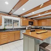This spacious and beautifully updated home boasts a unique layout with charming exposed brick and wood beam details. The expanded kitchen boasts stainless steel appliances, including a new refrigerator, an island, and a seamless flow into the formal dining room and cozy family room with a wood-burning fireplace. The main level offers two large bedrooms, two fully renovated bathrooms, and a generously-sized dedicated office. Enjoy outdoor living with meticulous landscaping, a large patio, and a deck....This spacious and beautifully updated home boasts a unique layout with charming exposed brick and wood beam details. The expanded kitchen boasts stainless steel appliances, including a new refrigerator, an island, and a seamless flow into the formal dining room and cozy family room with a wood-burning fireplace. The main level offers two large bedrooms, two fully renovated bathrooms, and a generously-sized dedicated office. Enjoy outdoor living with meticulous landscaping, a large patio, and a deck. The partially finished basement provides additional living space and a large laundry/utility room. An extra-large driveway leads to a two-car garage. Thoughtful upgrades include a Smart thermostat, updated light fixtures, new window treatments, a water softener, and insulation in the walls, attic, garage ceilings and bays. Schedule your showing today!