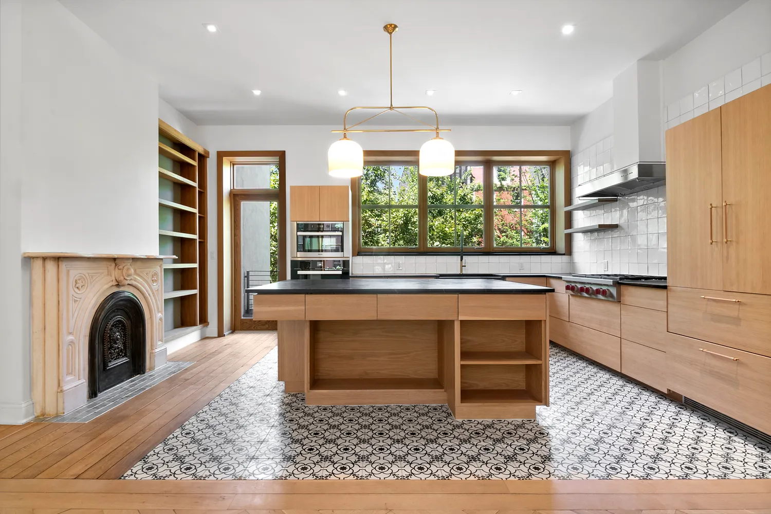 Enter the parlor floor's open floor plan with a beautiful custom chef's kitchen. Enjoy your deck off the kitchen area any time of day overlooking the beautiful garden.