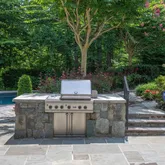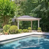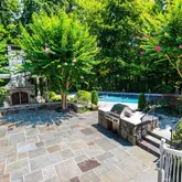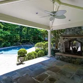 A long veranda with skylights and ceiling fans plus a screened-in porch, overlook the backyard. You can walk down your wide stairs to your flagstone patio, with natural gas connected Viking grill for outdoor grilling. The inviting saltwater, gunite heated pool, with pebble tec, spa, 18-inch full length of the pool swim out/seated ledge for safety and convenience awaits you. The beach entry is both kid and pet friendly. The open copper roof outdoor Pavilion complete with 2-sided fireplace, extends your season for swimming and outdoor fun, as well as provides sun protection for those that want to join in the fun without too much sun. Back inside after al fresco dining, shower in the large pool shower in the huge laundry room where fresh towels await you. This 5 bedroom, 5 full and 3 half bath home has stunning hickory character random plank floors on two levels, and porcelain tile on the lower level, complete with a custom catering kitchen. The wonderful, loving and discriminating owners have renovated this home with the highest quality products and service providers including: Bowa, Sub-Zero, Miele, Wolf, Franke just to name a few. This home is truly, better than new! The architectural details, excellent construction quality, and delightful comfort features await your discovery. This incredible estate home even includes an huge whole house 60 Kilowatt Generator with sound attenuation housing so you won't miss a beat in a power outage!