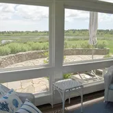 - Interior Features: A,AC,Ins,Irr,OSh, Floor 1: Vaulted entry with arched passageway to living room. Spacious living room with two sitting areas, fireplace with slate hearth and surround, custom built-ins, wall of glass doors with transoms overlooking the harbor and tidal salt ponds, access to stone terrace. Dining room with double glass French doors, mural of local scenery and birds on walls and ceiling, large window seat with storage. Library with custom hickory paneling, fireplace, built-in desk, bookshelves and cabinets, wet bar with copper sink and bar refrigerator, glass French doors lead to separate office with built-in desk, cabinets and bookshelves, 6 windows overlook the tidal salt ponds, French doors to stone terrace. Expansive kitchen/family room/dining area, custom alder cabinets, 57"x85" marble island, raised stone hearth fireplace with fossil shell inlays, built-ins, dining banquette, large custom cabinet with wet bar, copper sink and refrigerated drawers, access to stone terrace, yard and screened porch. Mudroom with cathedral ceiling and loft, laundry, granite sink, large storage closet, potting bench, powder room and access to pool and yard. Separate pantry with copper sink, granite counters, cabinets, ice maker and refrigerator. Powder room with glass sink with fossil fish and decorative painted walls. Guest bedroom, ensuite bath with frog tile inlays and beadboard walls., Floor 2: Beautiful landing. Master suite with spacious sitting area with fireplace, built-ins and bookshelves, built-in dressers, glass doored closets and laundry chute, private balcony overlooks harbor and tidal salt ponds, oversized walk-in closet with built-in dressers, safe and eve storage. Master bath has limestone floors, counters and wall tiles, double vanities with cabinets, seated make-up area, double soaking jacuzzi with fantastic views, steam shower, heated towel bars. 3 ensuite guest bedrooms all with gorgeous views, distinct tiled bathrooms, large custom closets and window seats.