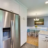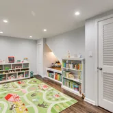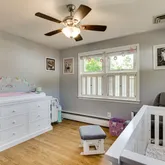You won't believe how many thoughtful improvements and upgrades have gone into this lovely home! Hang up your coats and bags on the eye-popping entryway feature wall. A fully renovated kitchen includes heated floors (2015) and brand-new refrigerator and dishwasher (2022), and is open to the dining room, which features elegant custom wainscoting. A newly renovated owner's bathroom (2022) has a heated floor and stylish ceramic tile. The first floor has well-maintained hardwood flooring throughout. Enjoy tons of extras in a spacious finished basement (2010) with two sizable bedrooms, one featuring a full wall of closets. The other has walk-up access to the backyard, making it ideal for a home office with a separate entry for clients so they don't need to walk through your main living spaces! Don't miss the large full bath, luxury vinyl plank flooring throughout (2021), built-in surround-sound system (2010), and newly installed, stylish laundry space (2022) with butcher block countertop, sliding barn door cabinetry, vanity, and newer washer and dryer (2017). Check out the special touches all book-lovers and children will delight in: a staircase nook complete with overhead reading light and cubbies underneath (2022) and floor-to-ceiling bookcases ready to serve as your personal library (2019).
