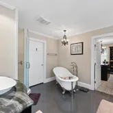 The first-floor primary suite feels like it's been plucked from a design magazine, natural light floods the room, highlighting its simple yet serene beauty. The en suite bath? Impressionante! Featuring Italian vanities, a freestanding soaking tub, and a walk-in shower that could easily rival a luxury spa. And let's not forget the first-floor guest suite, which offers the same calm and elegance, ensuring that family and friends feel pampered from the moment they arrive.