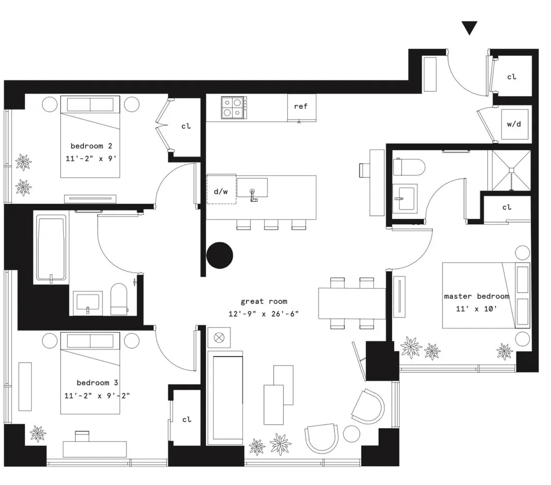 The split floorplan allows for the primary bedroom to be set apart from the other two bedrooms. 3 zones of AC/Heat, an in-unit washer and dryer, Latch keyless smart lock and a Butterfly MX smart intercom complete this exceptional offering.