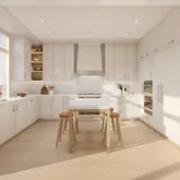 The design of the residences at 200 East 83rd is contemporary, honoring classicism with a fresh approach. Abundant light streams in, complementing the tailored interiors by award- winning designer Rottet Studio that are anchored with white oak flooring. The commitment to design excellence can be felt in each room and at every opportunity, especially in the kitchens, which feature honed Calacatta Elba marble countertops and backsplashes and marry state- of-the-art technology, top appliances (Miele and Sub-zero) and beautiful craftsmanship. Primary bathrooms feature custom stone floors and white Dolomiti walls and vanity top, complemented by elements of warm wood cabinetry. Rain showers, and heated floors infuse every day with luxury.