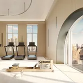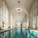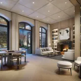 In the tower, a seventy- foot swimming pool is the centerpiece of a collection of comprehensive wellness and entertainment spaces including a fitness center, yoga room, spa with steam bath and sauna, and a Winter Garden with a charming fireplace and a dramatic outdoor loggia. At ground level, beyond the gates of the porte-cochere, is a concealed automated parking system. Beyond that, a view to a landscaped private garden. An adjacent library and private cinema underline a dedication to fine materials and an uncompromising attention to detail and a children’s playroom and teen hangout room complete the amenities. The lobby will be attended 24-hours a day with a doorman and concierge service.