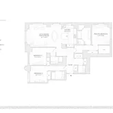The design of the residences at 200 East 83rd is contemporary,...Residence 8A is a sprawling three bedroom which works equally well as a two bedroom with library or a three bedroom. With a wonderful entrance gallery with great art walls and a beautiful kitchen with a big island for gathering, this apartment is perfect for casual and more formal entertaining. The primary bedroom suite has excellent closets and a five fixture bathroom. There is a powder room discreetly located off the entrance foyer.
