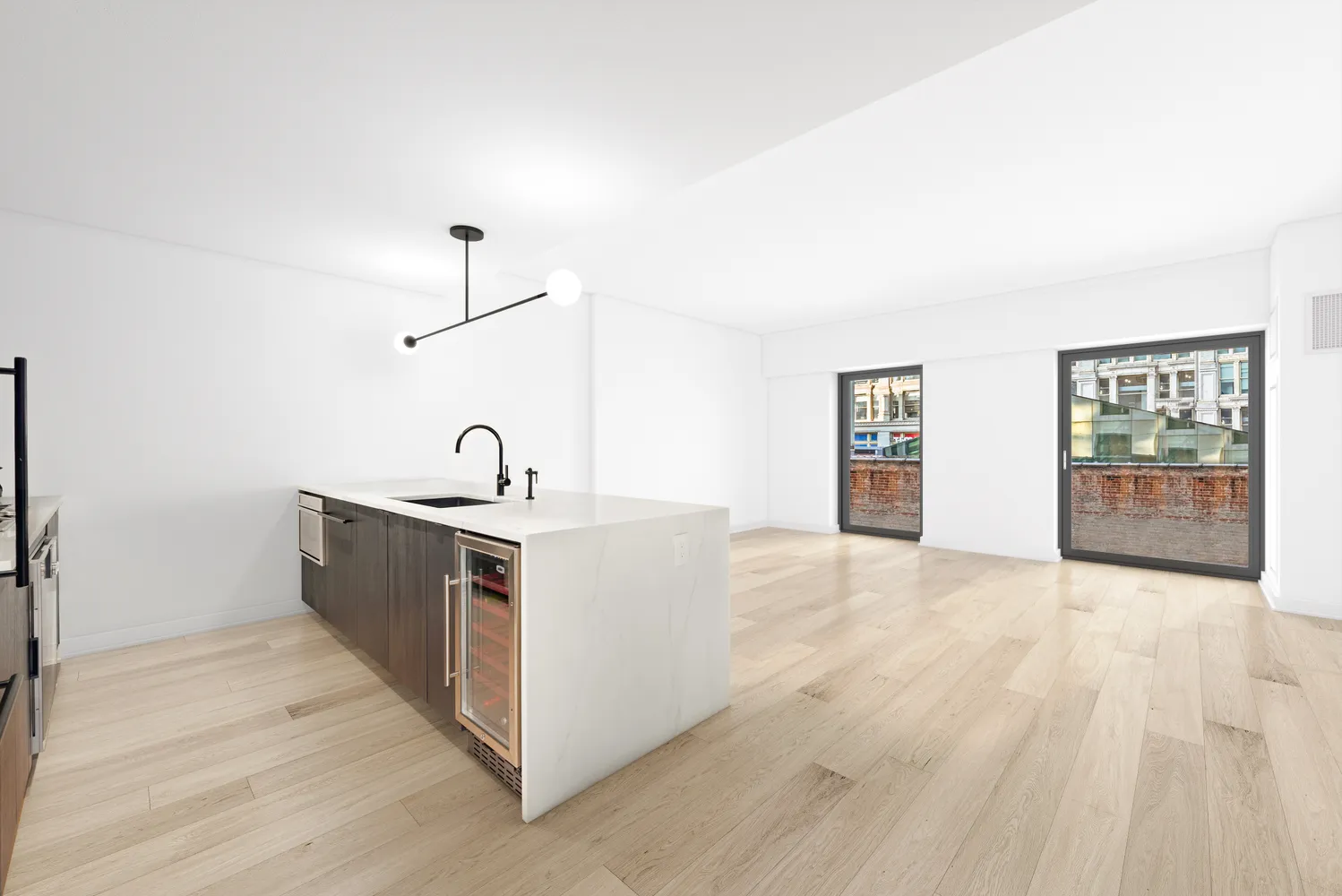 Built-in 2018 by esteemed Morris Adjmi Architects, 55 West 17th is a contemporary condominium that blends seamlessly with the surrounding Ladies Mile Historic District with its Danish white brick façade and bold bronze canopy. Residents enjoy a handsome 24-hour attended lobby, fitness center, children's playroom, a dramatic lounge with billiards and a catering kitchen, a screening room with a wet bar, a landscaped terrace with a grilling area, a bike room and storage.