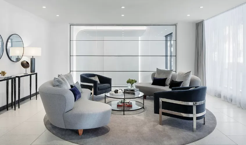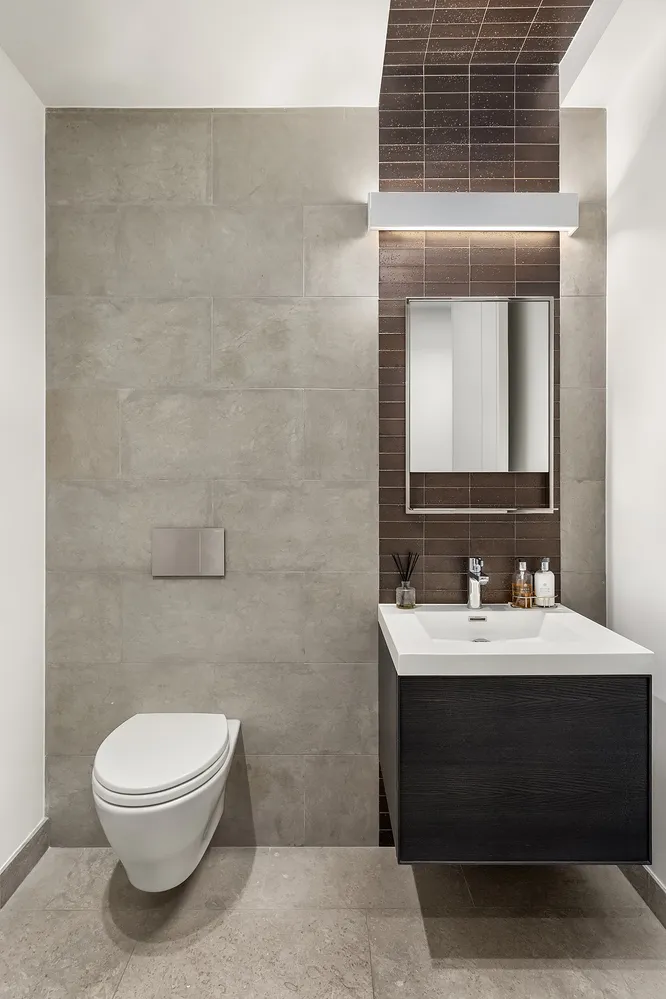 Additional luxurious features include a separate powder room for guests, a laundry closet, electronic remote-control blinds, and 8-foot hardwood doors. The residence was thoughtfully designed by architect Workshop/APD, with high-quality materials and hardware throughout, ensuring an atmosphere of modern sophistication and elegance.