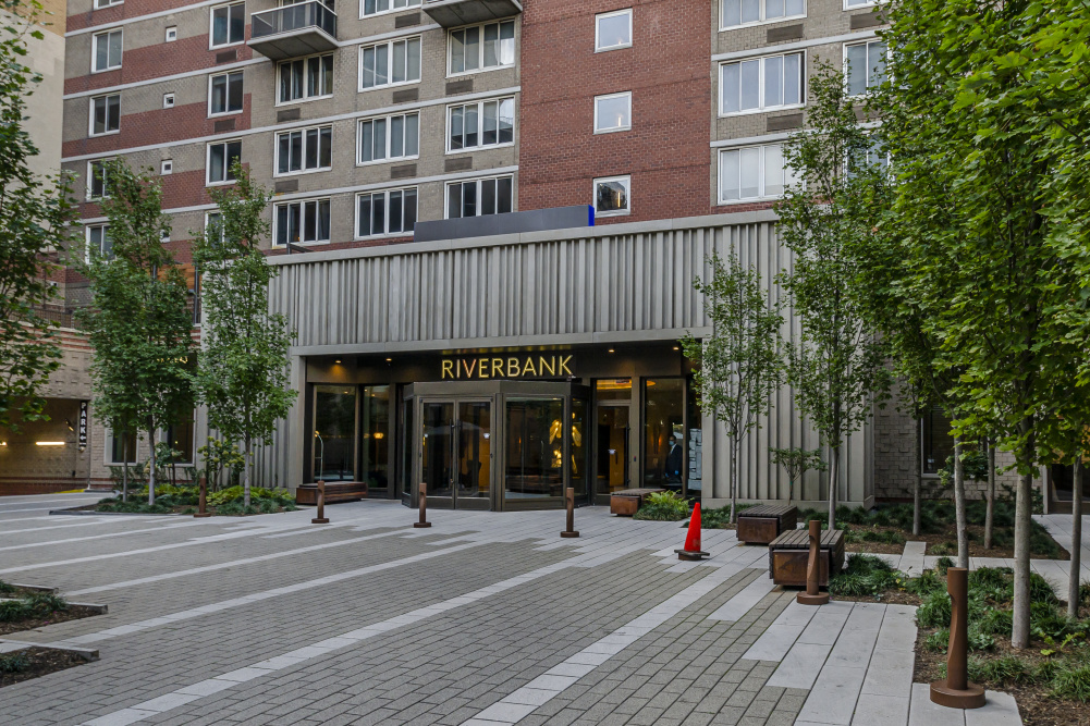 Riverbank is a highrise rental building located at 560 W 43rd St in Manhattan's Hell's Kitchen. It was built in 1987 (Post-war). The structure rises 44 stories, has a total building area of 388,073 Sq. Ft. and contains 418 units.