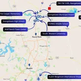 - Directions: From Georgetown TX Highway I-35, travel for 6 miles and turn right onto FM 972 E, travel for 3 miles. Turn right onto FM1105 S 1.3 miles. The destination will be on the left.