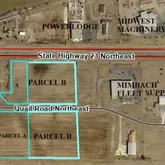 /industrial zoning (subject to city approval). All measurements of both parcels are preliminary and subject to verification by survey. These parcels are level and open and basically shovel ready. This is an excellent opportunity to acquire these well-located subdividable land parcels that are prime for commercial/industrial development. Offered For Sale at $2.00/SF (Quail Drive land) - $3.00/SF (Hwy 23 land)