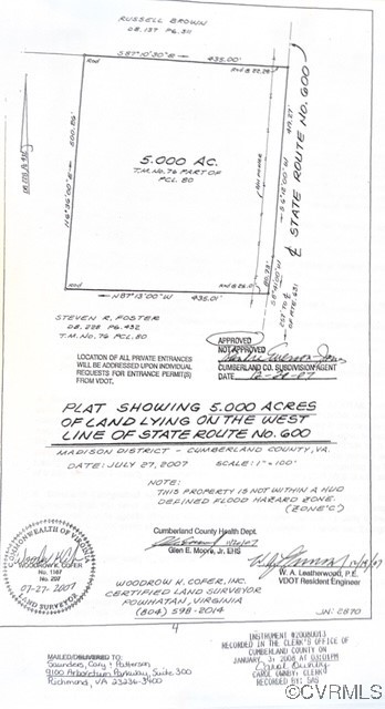 - Directions: Rt 60 West, Left on Rt 600 - go 4.5 miles on Rt 600 — Property is on the right just before the intersection of Rt 600 and Rt 631 - Davenport Road. Property is next to 786 Stoney Point Rd, Cumberland, VA 23040.