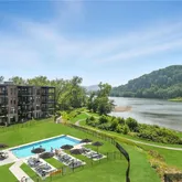 - Directions: Hulton Bridge to right on Allegheny Avenue through the town of Oakmont. At intersection of Allegheny Ave & College Ave, continue straight into The River's Edge and follow bright blue signs
