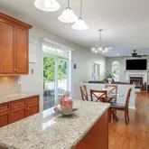 - Kitchen: Center Island, Granite/Stone Counter, Kitchen/Dine, Sliding Door, Pantry, Eat-In