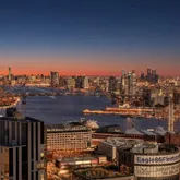 Rarely available, residence 48A is a mint-condition 2-bedroom, 2-bath corner home facing West and North, showcasing sweeping, unobstructed skyline views that span all of Manhattan and Brooklyn, including its most iconic landmarks. Floor-to-ceiling windows flood the spacious layout with light, complemented by wide-plank oak floors, 10-foot ceilings, custom window treatments, an in-unit washer/dryer, and a warm palette of light wood...STUNNING VIEWS, 5 STAR AMENITIES AND THE LAST 25 YEAR TAX ABATEMENT
