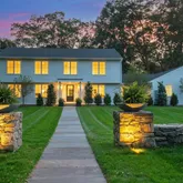 Located on a quiet cul-de-sac, this expanded and updated Colonial sits on a level, landscaped acre with a heated in-ground pool, stone patio, and fenced yard. Oversized windows fill the home with light, showcasing wide-plank wood floors and high-end finishes. The chef’s kitchen features marble counters, custom cabinetry, and top appliances. The spacious primary suite includes a luxurious bath with radiant heat, soaking tub, and oversized shower. Lives like a 4-bedroom with a flexible first-floor guest room/office. Finished walk-out lower level (~950 sf) opens to the pool area. Approx. 4,100 sf above grade. Oversized 3-car garage, outfitted closets, and full-house Generac generator complete the package.