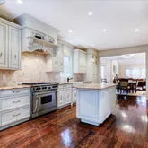 - Kitchen: Floor - Wood, Granite/Stone Counter, Sliding Door, Eat-In, Center Island