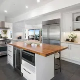 - Appliances: Built-In Gas Range, Built-In Refrigerator, Dishwasher, Disposal, Hood Over Range, Microwave, Tankless Water Heater, Wine Refrigerator