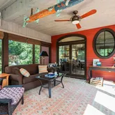 - Exterior Features: Fenced Yard, Screens, Storage Shed, Professional Landscaping, Sprinkler System, Decorative Lighting, Garden Area, Stone Wall, Porch, Deck - Wood, Patio