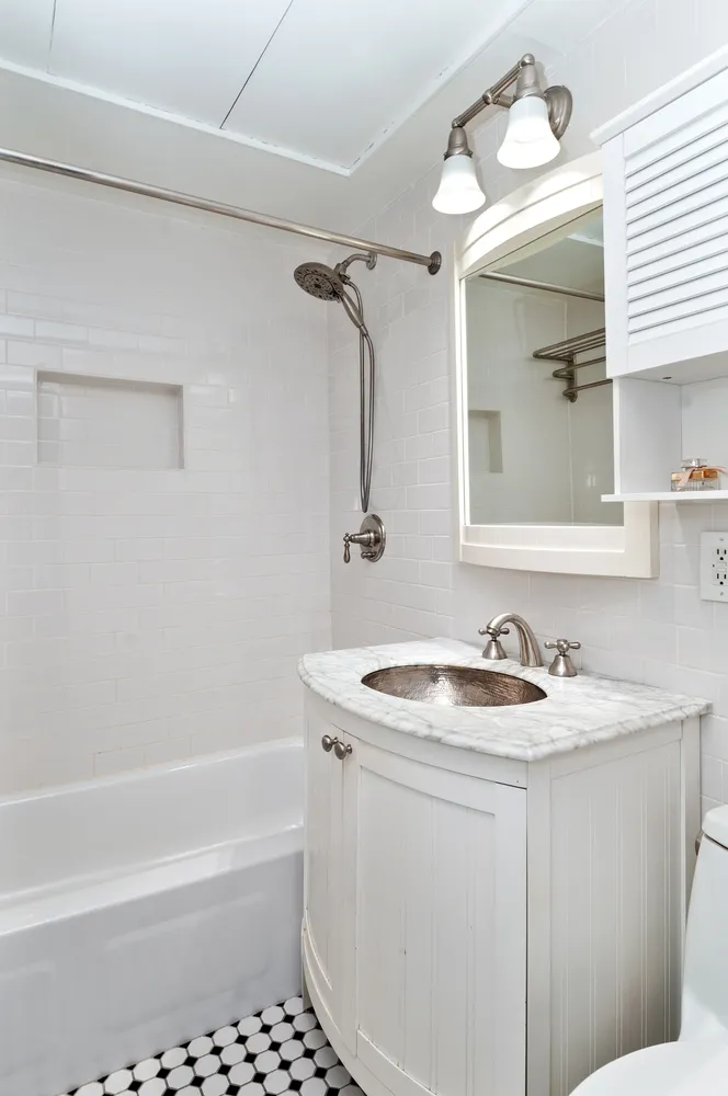 The streamlined renovated kitchen is efficiently designed with Bosch appliances, while the renovated bathroom has extra overhead storage for luggage and other infrequently used items. The elegantly finished closet in the living area is outfitted with full-length mirrors and an Elfa storage system. The western exposure provides a warm glow during the day and the views from the studio are quintessentially West Village, with a tranquil scene of brownstones and luscious verdant trees on Gay Street, which is known to be one of the most picturesque streets in the neighborhood.