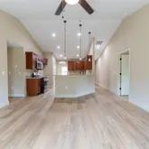 - Interior Features: Cathedral Ceiling(s), Ceiling Fan(s), Coffered Ceiling(s), Kitchen/Family Room Combo, Open Floorplan, Solid Wood Cabinets, Split Bedroom, Thermostat, Vaulted Ceiling(s), Walk-In Closet(s)