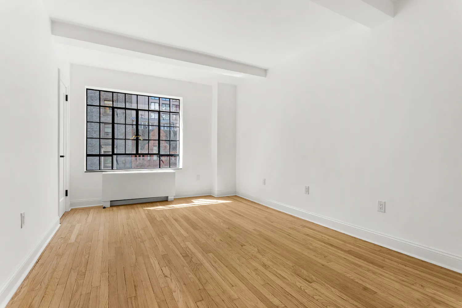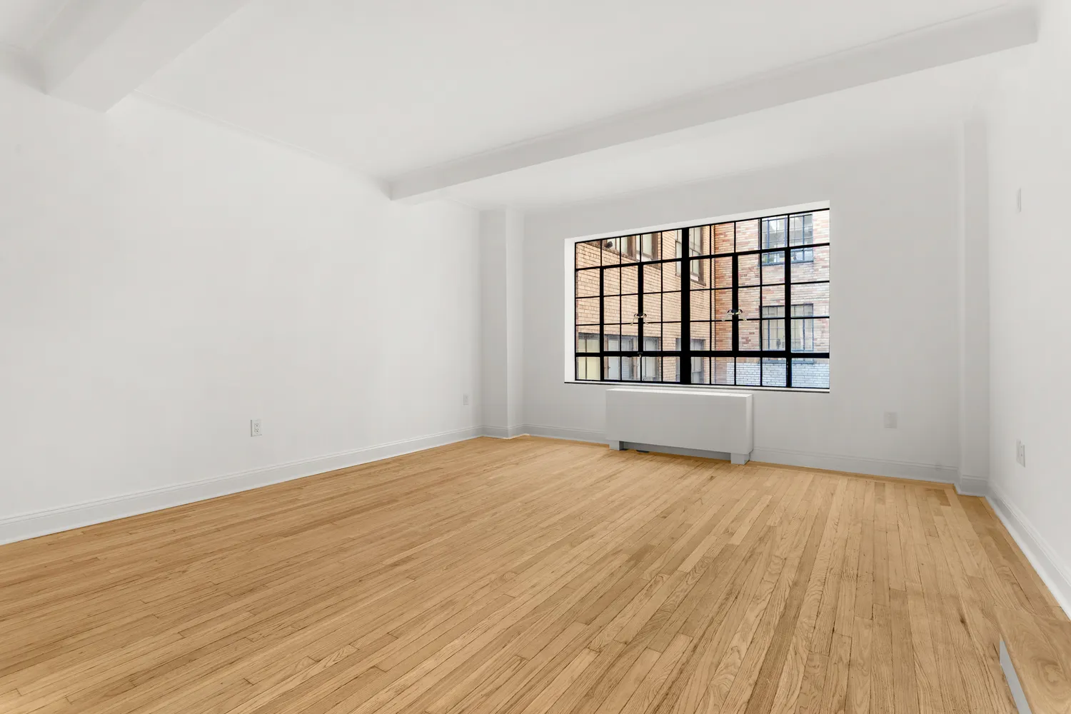 Beauty abound in sleek, clean lines of this brand new apartment showcasing modern conveniences while preserving classic Prewar style. Renovated windowed kitchen with stainless appliances including gas range, microwave, exhaust hood, dishwasher, refrigerator with ice maker, quartz countertops, new flooring, cabinets and lighting with a breakfast nook. The fully tiled bathroom has been completely redone with a sizable walk-in shower. The apartment features an elegant step-down living room, refurbished XL casement windows with original brass hardware, granite window sills, beamed high ceilings, gorgeous refinished wood flooring, brand new PTAC units, doors and hardware.