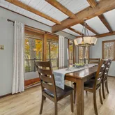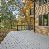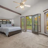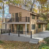 adjoining bathroom boasts dual sinks and a beautifully tiled shower, providing a touch of daily luxury. The upper level also features an additional spacious bedroom, providing flexibility for guests or family. The upstairs has a one-of-a kind architectural feature with wooden eaves that open to the main floor. Enjoy the beauty of the outdoors from the newly redone decking, perfect for entertaining or simply savoring the peaceful surroundings. Additional highlights include a gated driveway, a tranquil koi pond, 2 sheds for storage, outdoor playground, a (smart-device) self-watering garden system, and ductless split units for efficient heating and cooling. The property is clean, well-maintained, and ready for your personal touch. New Deck 2025, New Flooring (lower level) 2025, New Flooring (main floor) 2023, 3rd Floor Bathroom Remodel 2020