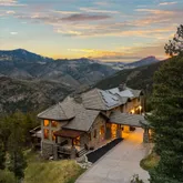 The main level is designed for both relaxed daily living and memorable gatherings—whether you’re hosting holidays with loved ones or enjoying a quiet...Tucked into a peaceful corner of Evergreen, this inviting custom retreat greets you with a charming porte-cochère, offering a warm welcome and sheltered entry. Inside, soaring ceilings, rich wood beams, and striking onyx slab flooring create a sense of comfort and character, while expansive windows frame breathtaking views of the Continental Divide.
