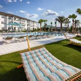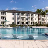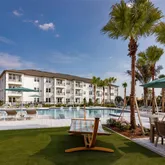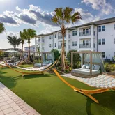 Club-inspired Pool w/ Ledge Chaise Loungers, Poolside Hammock Garden & Cabanas, Ample Coworking Spaces & Micro Offices, 24-Hr Wellness Studio w/ Cardio & Free Weights, Fenced in Pup Park w/ Seating, and Onsite EV Charging Kiosks for Convenience.