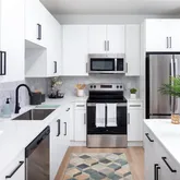 Modern 1-, 2-, and 3- Bedroom Residences, Pre-installed High Speed WIFI, Chef-inspired Kitchen w/ Prep Island, Stylish Quartz Countertops, GE Stainless Steel Appliance Package, and Light-toned Hardwood Plank-style Flooring. Community Amenities feature