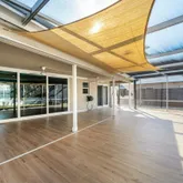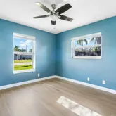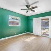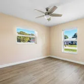 The primary bedroom offers a serene view of the patio through its slider doors with louvered shutters. There's also plenty of space for an addition or pool, making this home even more versatile. Don't miss this move-in-ready home with modern upgrades and exceptional storm protection