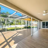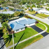 Stylish and Secure Home with Brand New Roof & Modern Updates! This beautifully maintained corner lot home offers privacy, space, and an array of recent upgrades! Located in a quiet, tucked-away neighborhood, the property features a brand-new metal roof and flat roof (2023), along with double-wrap rafter strapping for enhanced wind mitigation — providing peace of mind for Florida living. The spacious interior boasts a bright, open-concept layout with a fabulous front living room in a ''great room''...Stylish and Secure Home with Brand New Roof & Modern Updates! This beautifully maintained corner lot home offers privacy, space, and an array of recent upgrades! Located in a quiet, tucked-away neighborhood, the property features a brand-new metal roof and flat roof (2023), along with double-wrap rafter strapping for enhanced wind mitigation — providing peace of mind for Florida living. The spacious interior boasts a bright, open-concept layout with a fabulous front living room in a ''great room'' style, complete with triple pocket sliders that seamlessly connect to the covered and screened patio — perfect for indoor-outdoor entertaining. The updated white kitchen features granite countertops, stainless steel appliances, soft-close drawers, and convenient cabinet pull-outs. A pass-through window extends the granite ledge to the patio, making hosting a breeze. The flexible bonus room off the kitchen is filled with natural light from windows and sliders on three sides  ideal as a family room, media room, home office, or breakfast nook. Both bathrooms have been tastefully renovated with neutral white finishes and stone vanity tops, adding a touch of modern elegance. Key Features and Upgrades: