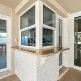 Impact Glass Windows with added storm protection (front windows with roll-down shutters, side windows with accordion shutters, and a Bahama shutter on one back window)