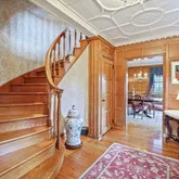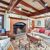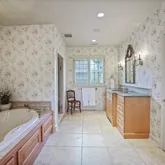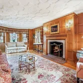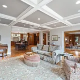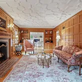 ceiling design in the Living Room, Entryway and Dining Room. The sumptuous Family Room with fireplace and coffered ceiling, Informal Eating Area and exquisite gourmet Kitchen are indications of the desire of the current owners to make living in this home a genuine pleasure. In addition to the spacious Primary Suite there are 3 Bedrooms, each with its own character and delightful features such as arched windows,