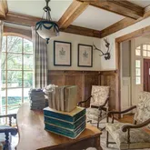 • Interior Features: Beamed Ceilings, Bookcases, Central Vacuum, Disappearing Attic Stairs, Elevator, High Ceilings 10 ft Lower, High Ceilings 10 ft Main, Walk-In Closet(s)