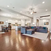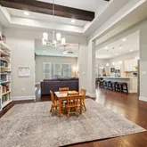 Step inside to an open-concept living area with high ceilings, abundant natural light, built in bookcases, and a cozy gas fireplace. The kitchen shines with quartz countertops,...Welcome to 1005 Hezekiah Lane, a thoughtfully designed single-story home in the vibrant Leander community of Palmera Ridge. This east-facing 4-bedroom, 3.5-bath home features a flexible layout with a private guest ensuite, ideal for multigenerational living or hosting visitors. The home also offers a dedicated office and dining room.