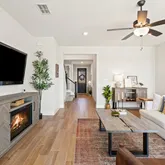 - Interior Features: Ceiling Fan(s), Kitchen Island, Main Level Master, Open Floorplan, Quartz Counters, Walk In Closets