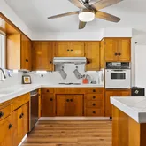 - Kitchen Features: Dishwasher, Disposal, Electric Range/Cooktop, Refrigerator, Tile Counters