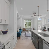 Inside, oversized windows, a central chef's kitchen, and an open-concept layout make hosting or hanging a breeze. Gather around the fireplace, statement island, designated dining nook, or retreat to any of the three outdoor spaces for fresh air. Grill on the deck, play games in your fenced-in backyard, or relax under a covered patio, enjoying the flexibility and alfresco accessibility that's increasingly hard to find this close to the city's core.