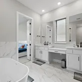 - Interior Features: Ceiling Fan(s), Separate Formal Dining Room, Double Vanity, Eat In Kitchen, French Doors Atrium Doors, High Ceilings, In Law Floorplan, Kitchen Island, Multiple Dining Areas, Main Level Master, Open Floorplan, Pantry, Quartz Counters, Recessed Lighting, Soaking Tub, Smart Thermostat, Walk In Closets