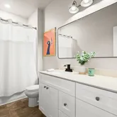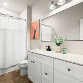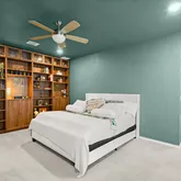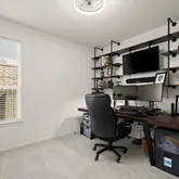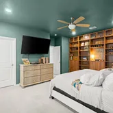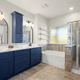 Your primary suite is spacious, serene, and perfect for recharging. It features a stunning built-in storage system with built-in shelves and cabinets. Ideal for displaying or storing your treasures. You have a walk-in closet in the bedroom. Your en-suite has a water closet, a striking cobalt-colored double vanity, a walk-in shower, a soaking tub, and a second walk-in closet. Your secondary bedrooms are generously sized. Each room has a walk-in closet. You have a secondary bathroom with an extended single vanity and a tub/shower combination.