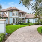 Welcome to a world where timeless elegance meets unparalleled craftsmanship. This exquisite custom-built estate, nestled on a sprawling 0.97-acre corner lot in the exclusive, gated enclave of Palencia, offers a lifestyle of privacy, comfort, and sophistication. Situated on a peaceful cul-de-sac and bordered by a serene wooded recreational park, this home is just steps away from a community playground, making it a perfect sanctuary for families....A Custom-Built Estate of Unrivaled Luxury in Palencia